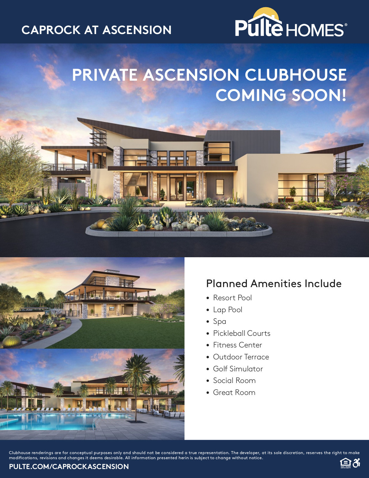 A private Clubhouse is coming to Ascension! With resort-style pools, fitness centers, pickleball courts, and social spaces to enjoy, living in the staff-gated Ascension master plan just got sweeter.