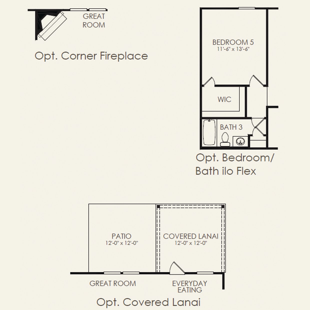 - Enhanced Vinyl Plank Hardwood in the Foyer, Kitchen, Everyday Eating/Dining Area (per plan), Powder Room, Owner’s Bath, Secondary Baths, Laundry Room, Flex/Study/Task (per plan)