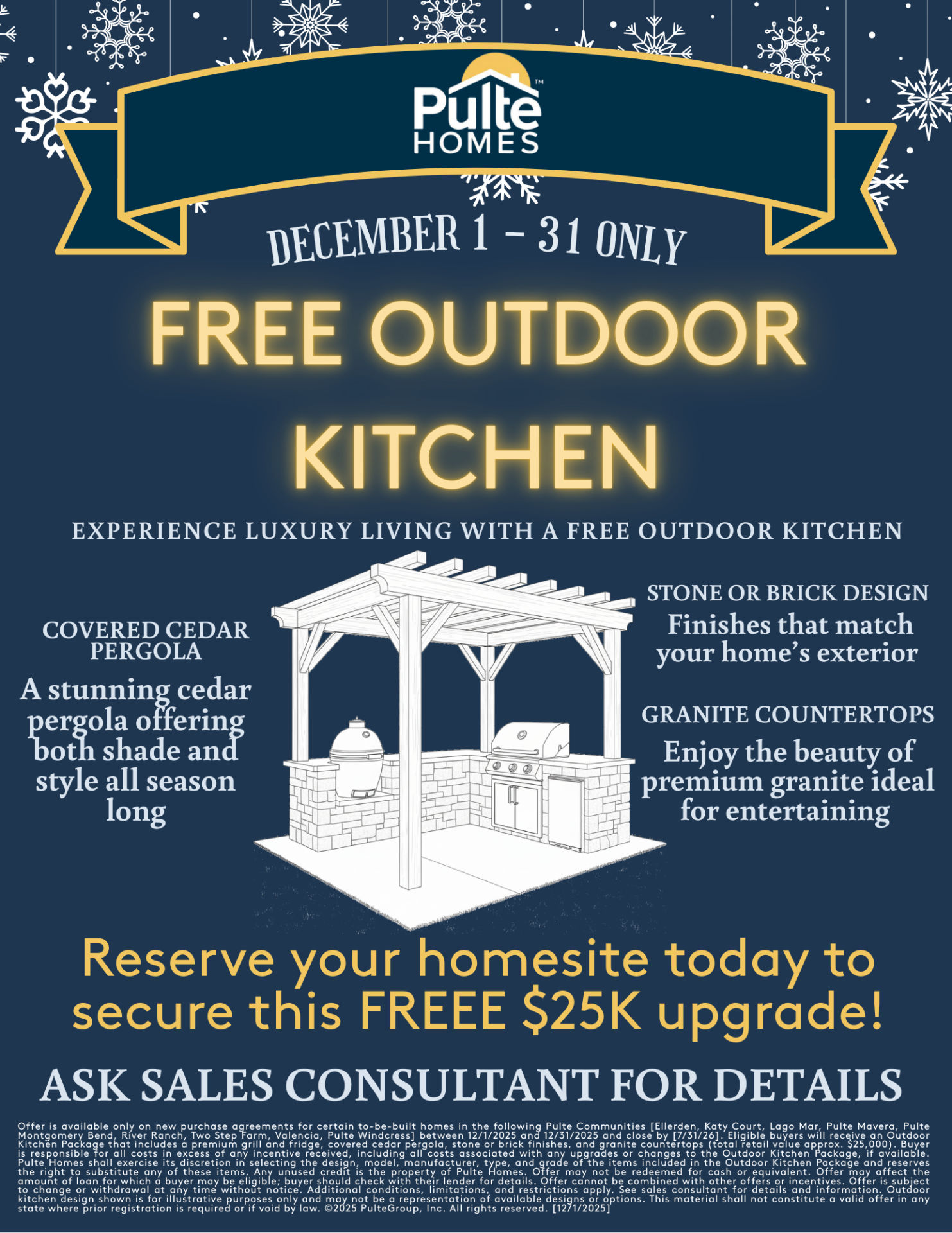 Community Association and golf fees may be required. Prices, promotions, incentives, features, options, amenities, floor plans, elevations, designs, materials, and dimensions are subject to change without notice. Square footage and dimensions are estimated and may vary in actual construction. Community improvements and recreational features and amenities described are based upon current development plans which are subject to change and which are under no obligation to be completed. Actual position of house on lot will be determined by the site plan and plot plan. Floor plans, interiors and elevations are artist's conception or model renderings and are not intended to show specific detailing. Floor plans are the property of PulteGroup, Inc. and its affiliates and are protected by U.S. copyright laws. For further information, see our terms of use. This is not an offering to residents of NY, NJ, CA or CT or where otherwise prohibited by law. Pulte Home Corporation is a licensed California real estate broker (Lic. # 00876003).
